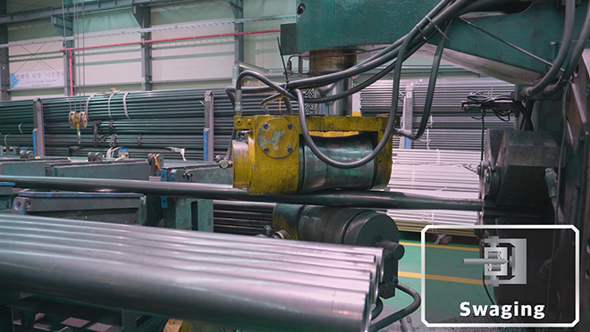 The process of reduction is on one side of the tube in order to insert the correct size of the die.