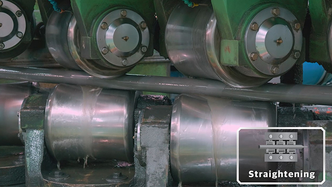 The process of forming straightness and maintain roundness in tubes by passing through machine rollers.
